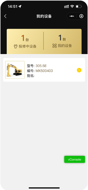 用户注册后,在“我的设备”中,选择设备进行报修;