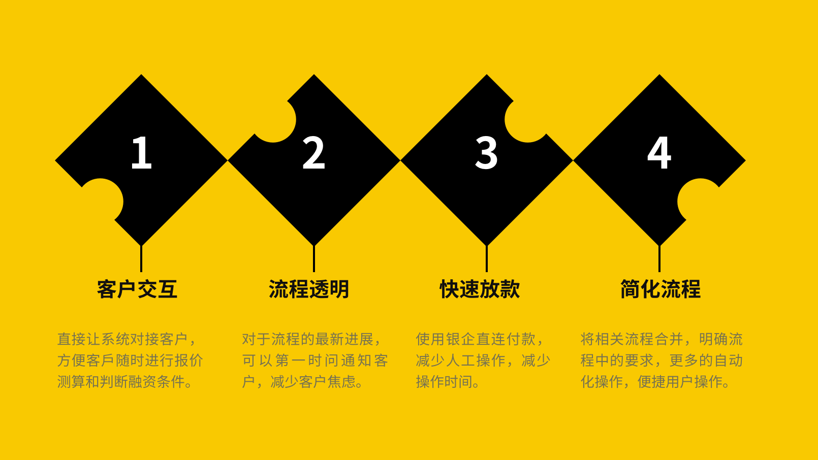 已有设备回租,助力客户业务拓展,数字平台拉直业务链,端到端(客户端-业务端)线上操作,24小时放款。